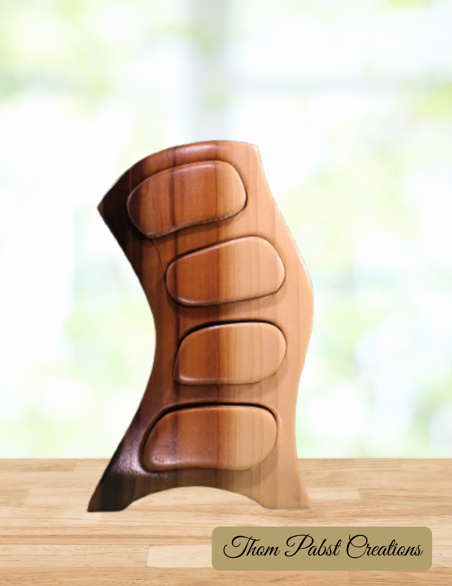 "Great to have such creative genius in our town. Thom has such innovative ideas that he translates into wood. I am blessed to have purchases an assortment of his work!"